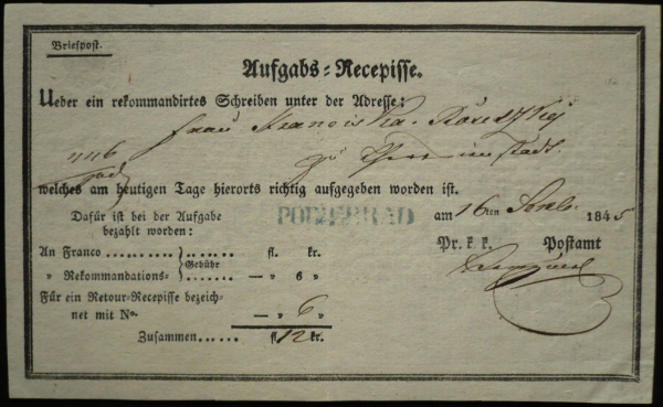 1845 Podací lístek PODIEBRAD