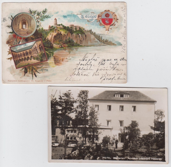 Zvíkov, Zvíkovské Podhradí; sestava 2 pohlednic